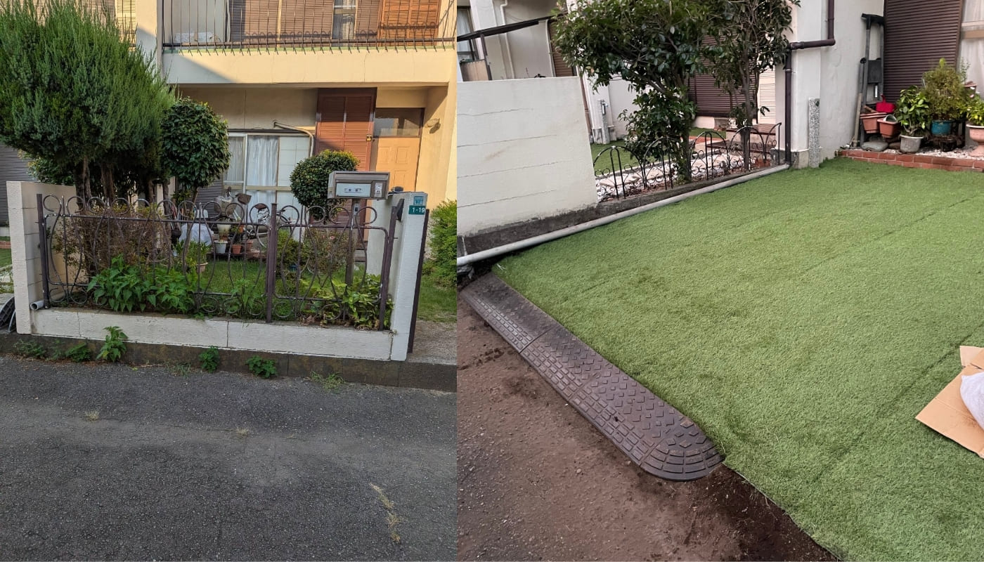 外壁と残土の撤去から地盤調整、人工芝敷設まで行った今回の外構工事。他の専門業者では100万円を超える見積りでしたがピカッとクリーンでは現場状況を精密に確認し、必要な工程だけを的確に行い外注ではなく自社で施工した為、“半額以下の費用”で実現しました。駐車スペースは見た目もすっきりし、雑草管理や水はけの心配も軽減。「費用を抑えつつ、しっかりした施工をしてもらえて良かった」とご満足いただけました。コスト重視の外構リフォームをご検討の方は、ぜひお任せください。
