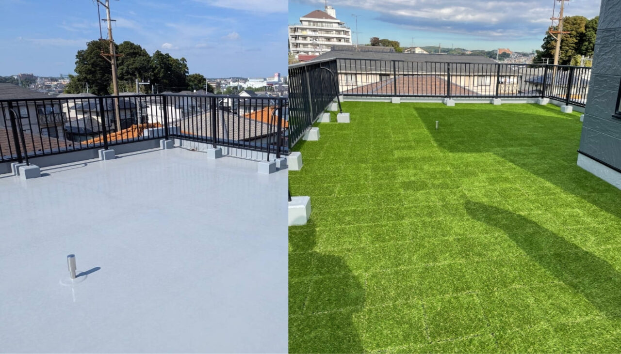 人工芝を敷設することで、屋上全体が明るくおしゃれな印象になります。防水や下地処理をしっかり行うことで、長期間美しい状態を保つことが可能です。